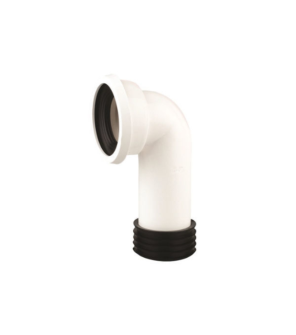 The Wavin Osma Soil WC904 4" 90° Pan Connector is a high-quality white polypropylene fitting designed for connecting horizontal WC pans to 110mm soil pipes. Featuring a 90-degree bend and push-fit EPDM sealing for a watertight connection, it's ideal for both new and retrofit toilet installations.