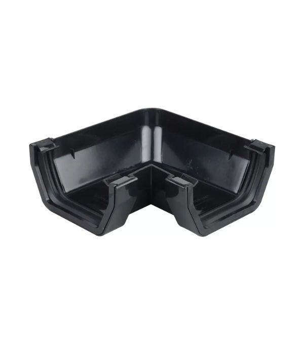 The Wavin Osma SquareLine 4T803B 90° Gutter Angle in Black is a high-quality inner corner fitting designed for 100mm square gutter systems. Crafted from durable plastic with a sleek black finish, it offers a seamless 90-degree connection to efficiently manage rainwater flow at internal corners of buildings.