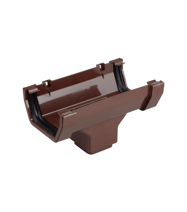 The Wavin Osma SquareLine 4T806N Running Outlet in brown is a durable, high-capacity fitting designed to connect 100mm square gutters to 68mm round downpipes. Ideal for modern and traditional rooflines, this PVC outlet ensures smooth water flow and reliable performance in rainwater drainage systems.