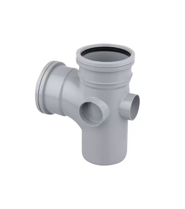 The Wavin OsmaS PVCU Branch 90° GY 82×82×82 S/S (3S190G) enables a reliable 90° connection between 82 mm soil or waste pipes. Designed for secure, leak‑resistant joins, it’s ideal for domestic and commercial drainage installations.