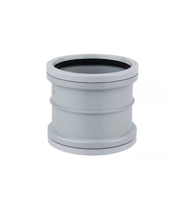 The Wavin OsmaSoil 4S105G Double Socket in grey is designed for quick and reliable pipe repairs. Featuring a 110mm nominal diameter and durable 3.5mm wall thickness, this slide sleeve socket ensures a tight, leak-proof seal with thermoplastic elastomer (TPE) material sealing for lasting performance.