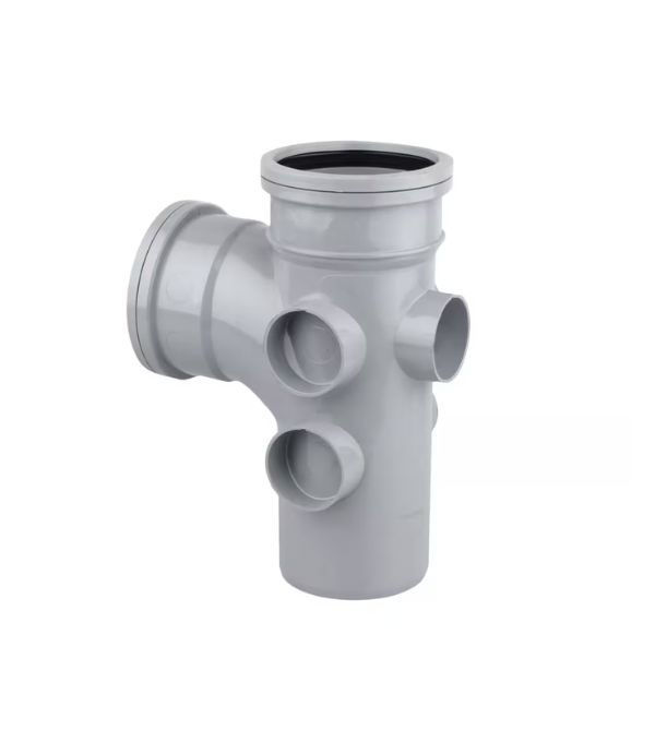 The Wavin OsmaSoil 4S195G 110mm Single 5 Boss Branch 87.5° in Grey is a high-quality PVC-U fitting designed to connect multiple waste pipes into a single soil stack. Its 87.5° angle ensures smooth flow, reduces blockages, and provides efficient drainage performance. Suitable for domestic and commercial applications, this branch is easy to install, durable, and fully compliant with BS EN 1329 standards. Ideal for maintenance, repair, or new installations, it offers a reliable solution for complex soil and waste pipe systems.