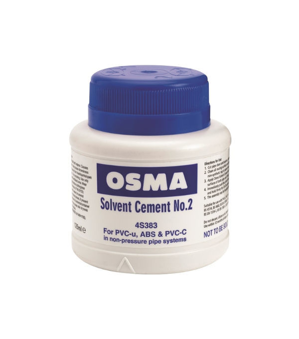 The Wavin OsmaSoil 4S383 Solvent Cement No. 2 125ml Can is a high-quality adhesive designed for bonding PVC soil and waste pipes. Its fast-drying formula creates strong, leak-proof joints suitable for both domestic and commercial plumbing applications. Compact and easy to use, this solvent cement ensures durable connections and reliable long-term performance in your pipe systems.