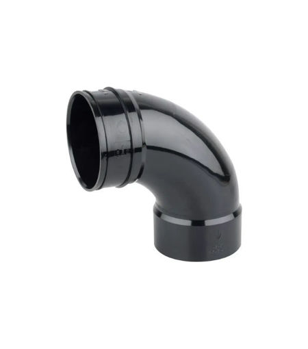 The Wavin OsmaSoil 4S461B 110mm 87.5° Bend in black is a high-performance PVC-U soil pipe fitting designed for efficient directional changes in vertical and horizontal soil stacks. Featuring double socket weld ends for secure connections, this 110mm bend ensures reliable drainage system integration.