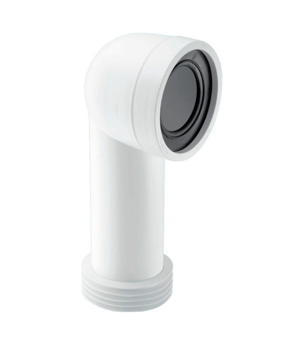 The McAlpine WC-CON8 is a 90° bend adjustable length rigid WC connector with a 97–107mm inlet and a 4″/110mm outlet. Ideal for tight toilet installations, it features a secure double seal pan connection. Suitable for all pan spigots and compatible with PVC-U and cast iron soil pipe systems. Manufactured in durable polypropylene and compliant with BS 5627:1984 and DIN 1389:2015-12.